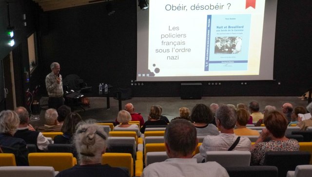 - Arcachon, 1er octobre : Présentation dans l’amphi du MA.AT,, à l’invitation de l’Association Interculturelle d’Arcachon. Devant un amphi de 80 personnes. Rencontre émouvante entre le fils de Léo Coudin et la fille d’Henri Portes. Leurs pères policiers républicains chérissaient les valeurs que les nazis piétinaient.